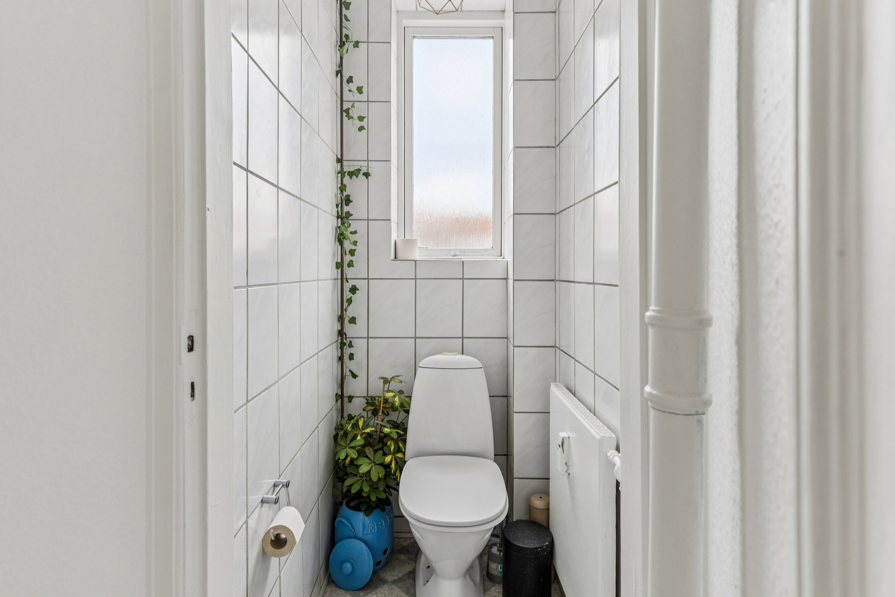 Lejligheden er udstyret med et separat toilet, hvilket bidrager til boligens praktiske indretning. Alle rum er organiseret på en måde, der maksimerer brugen af pladsen, for at tilbyde en behagelig og funktionel boligoplevelse.