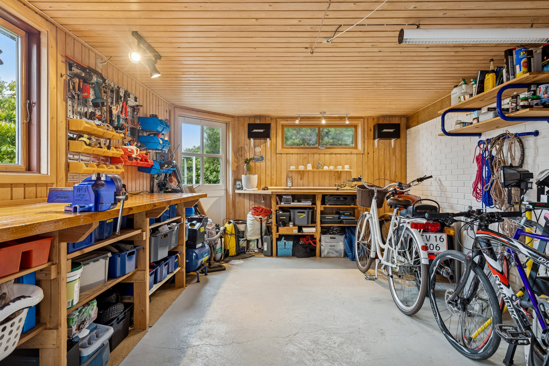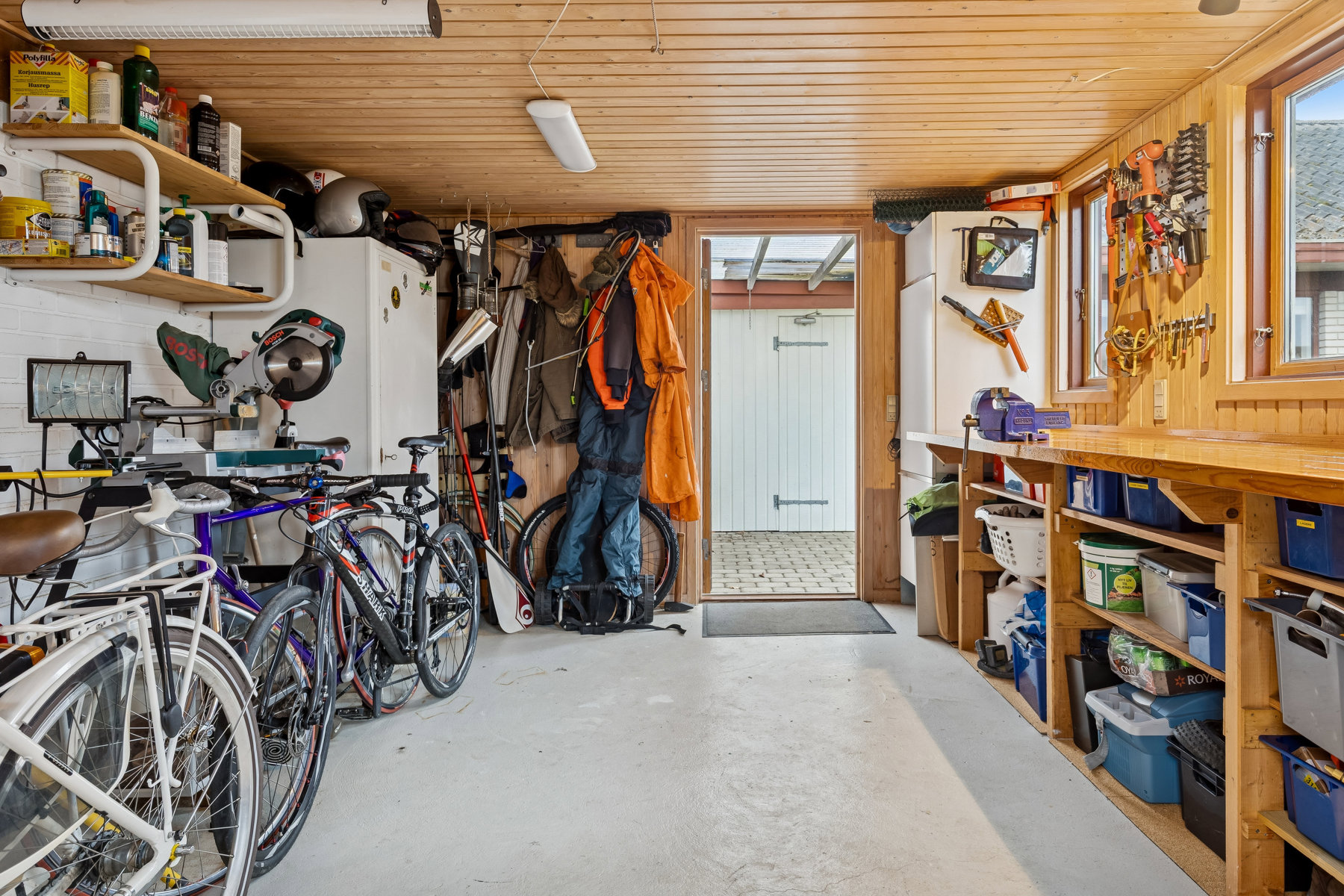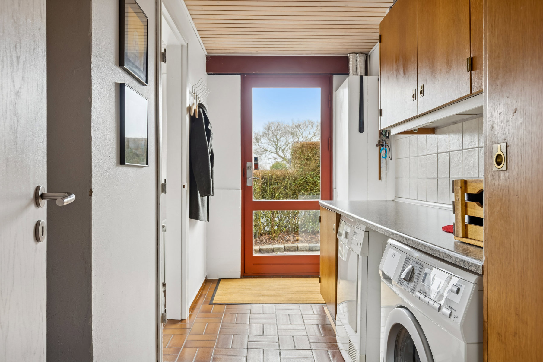 Husets bryggers er en praktisk tilføjelse, der giver rig mulighed for opbevaring og funktioner som hverdagens praktiske gøremål kræver. Her er der plads til både vaskemaskine og tørretumbler, samt mulighed for at holde det hele godt organiseret. Dette rum gør det lettere at have en hverdag, hvor logistik kan glide ubemærket i baggrunden.