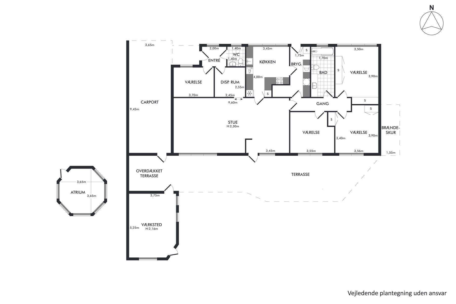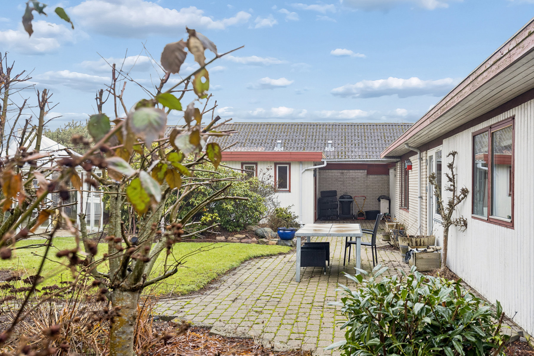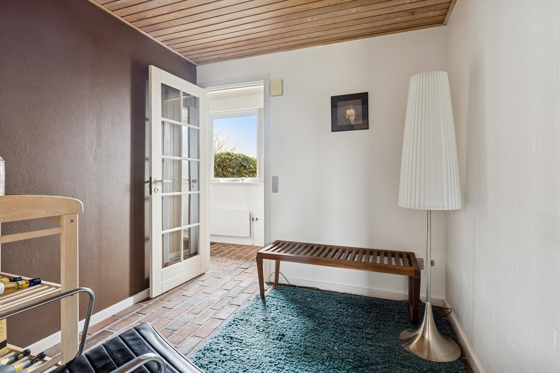 Husets bryggers er en praktisk tilføjelse, der giver rig mulighed for opbevaring og funktioner som hverdagens praktiske gøremål kræver. Her er der plads til både vaskemaskine og tørretumbler, samt mulighed for at holde det hele godt organiseret. Dette rum gør det lettere at have en hverdag, hvor logistik kan glide ubemærket i baggrunden.